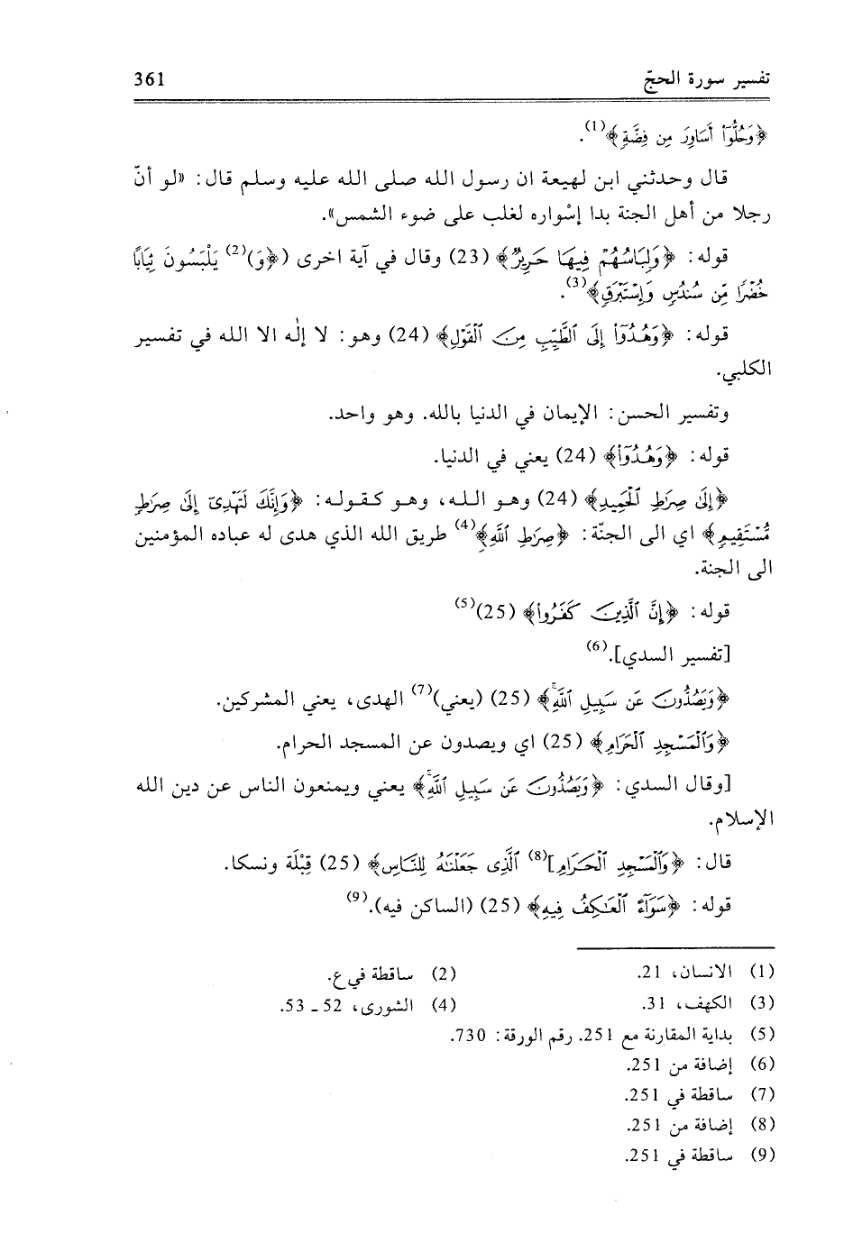 قَوْلُهُ: {إِنَّ الَّذِينَ كَفَرُوا} [الحج: 25] تَفْسِيرُ السُّدِّيِّ.