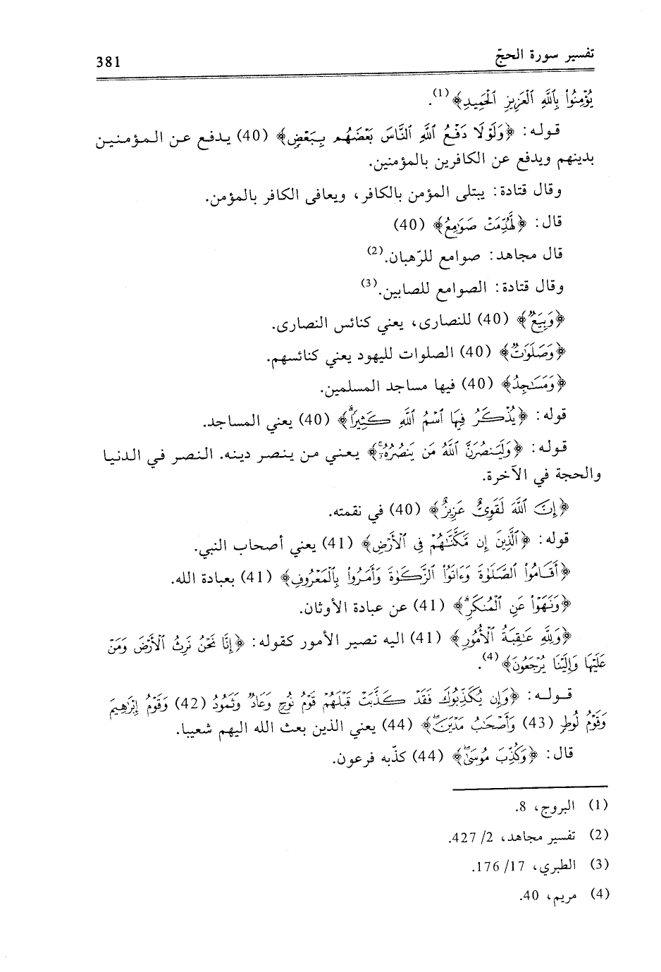 قَوْلُهُ: {يُذْكَرُ فِيهَا اسْمُ اللَّهِ كَثِيرًا} [الحج: 40] يَعْنِي الْمَسَاجِدَ.