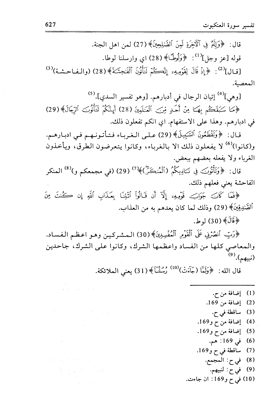 {رَبِّ انْصُرْنِي عَلَى الْقَوْمِ الْمُفْسِدِينَ} [العنكبوت: 30] الْمُشْرِكِينَ وَهُوَ أَعْظَمُ الْفَسَادِ، وَالْمَعَاصِي كُلُّهَا مِنَ الْفَسَادِ، وَأَعْظَمُهَا الشِّرْكُ، وَكَانُوا عَلَى الشِّرْكِ، جَاحِدِينَ نَبِيَّهُمْ.