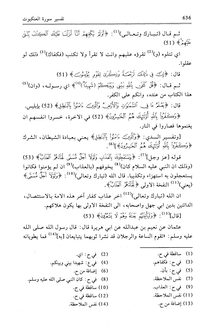 وَتَفْسِيرُ السُّدِّيِّ: {وَالَّذِينَ آمَنُوا بِالْبَاطِلِ} [العنكبوت: 52] ، يَعْنِي بِعِبَادَةِ الشَّيْطَانِ: الشِّرْكَ {وَكَفَرُوا بِاللَّهِ أُولَئِكَ هُمُ الْخَاسِرُونَ} [العنكبوت: 52] قَوْلُهُ عَزَّ وَجَلَّ: {وَيَسْتَعْجِلُونَكَ بِالْعَذَابِ وَلَوْلا أَجَلٌ مُسَمًّى لَجَاءَهُمُ الْعَذَابُ} [العنكبوت: 53] وَذَلِكَ أَنَّ النَّبِيَّ عَلَيْهِ السَّلامُ كَانَ يُخَوِّفُهُمْ بِالْعَذَابِ إِنْ لَمْ يُؤْمِنُوا، فَكَانُوا يَسْتَعْجِلُونَ بِهِ اسْتِهْزَاءً وَتَكْذِيبًا قَالَ اللَّهُ تَبَارَكَ وَتَعَالَى: {وَلَوْلا أَجَلٌ مُسَمًّى} [العنكبوت: 53] ،