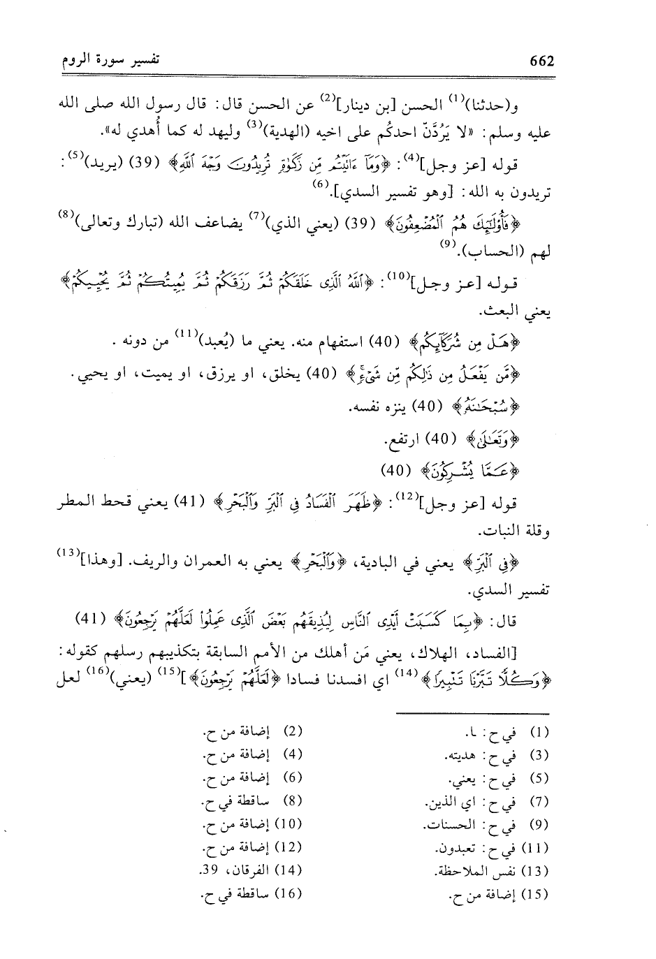 قَوْلُهُ عَزَّ وَجَلَّ: {وَمَا آتَيْتُمْ مِنْ زَكَاةٍ تُرِيدُونَ وَجْهَ اللَّهِ} [الروم: 39] يُرِيدُ: تُرِيدُونَ بِهِ اللَّهَ: وَهُوَ تَفْسِيرُ السُّدِّيِّ.