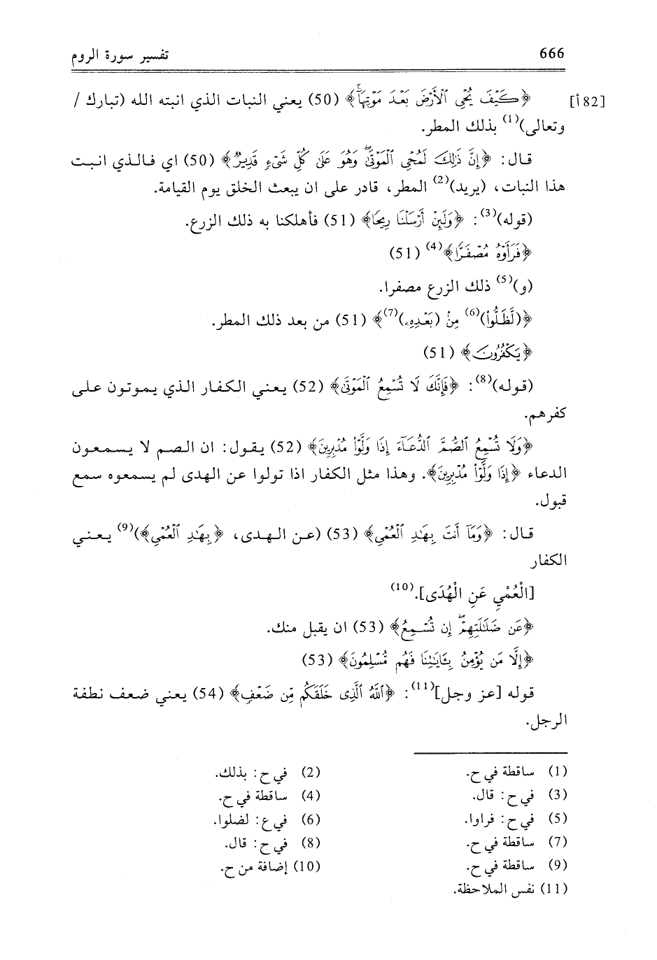 {إِلا مَنْ يُؤْمِنُ بِآيَاتِنَا فَهُمْ مُسْلِمُونَ} [الروم: 53] قَوْلُهُ عَزَّ وَجَلَّ: {اللَّهُ الَّذِي خَلَقَكُمْ مِنْ ضَعْفٍ} [الروم: 54] ، يَعْنِي: ضَعْفَ نُطْفَةِ الرَّجُلِ.