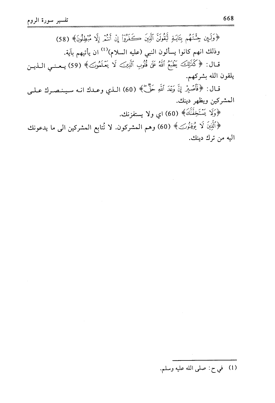 {الَّذِينَ لا يُوقِنُونَ} [الروم: 60] وَهُمُ الْمُشْرِكُونَ، لا تُتَابِعِ الْمُشْرِكِينَ إِلَى مَا يَدْعُونَكَ إِلَيْهِ مِنْ تَرْكِ دِينِكَ.