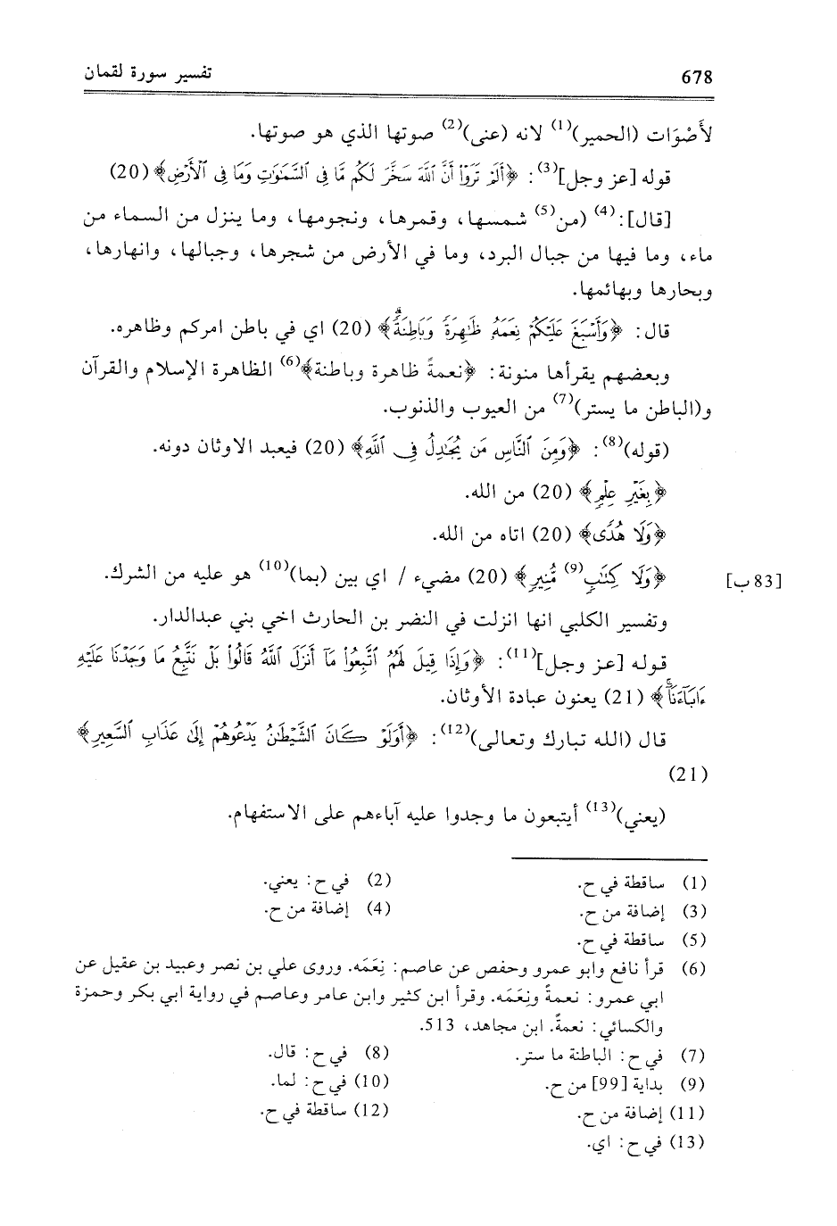 {وَلا كِتَابٍ مُنِيرٍ} [لقمان: 20] مُضِيءٍ، أَيْ: بَيِّنٌ بِمَا هُوَ عَلَيْهِ مِنَ الشِّرْكِ.