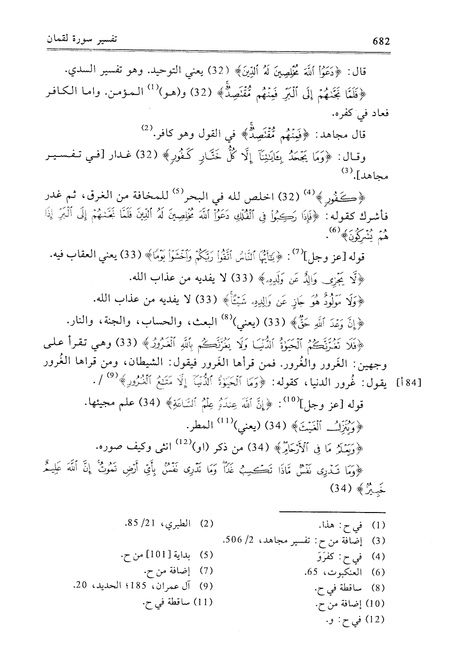 {فَلا تَغُرَّنَّكُمُ الْحَيَاةُ الدُّنْيَا وَلا يَغُرَّنَّكُمْ بِاللَّهِ الْغَرُورُ} [لقمان: 33] وَهِيَ تُقْرَأُ عَلَى وَجْهَيْنِ: الْغَرُورُ وَالْغُرُورُ، فَمَنْ قَرَأَهَا الْغَرُورَ، فَيَقُولُ: الشَّيْطَانُ، وَمَنْ قَرَأَهَا الْغُرُورَ يَقُولُ: غُرُورُ الدُّنْيَا، كَقَوْلِهِ: {وَمَا الْحَيَاةُ الدُّنْيَا إِلا مَتَاعُ الْغُرُورِ} [الحديد: 20] .