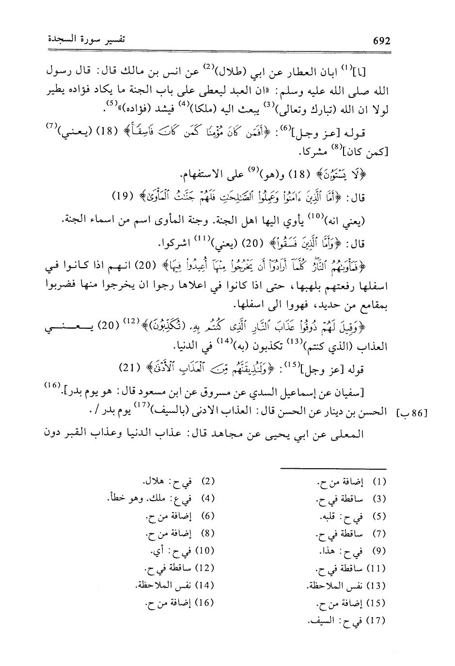 قَوْلُهُ عَزَّ وَجَلَّ: {أَفَمَنْ كَانَ مُؤْمِنًا كَمَنْ كَانَ فَاسِقًا} [السجدة: 18] ، يَعْنِي: كَمَنْ كَانَ مُشْرِكًا.