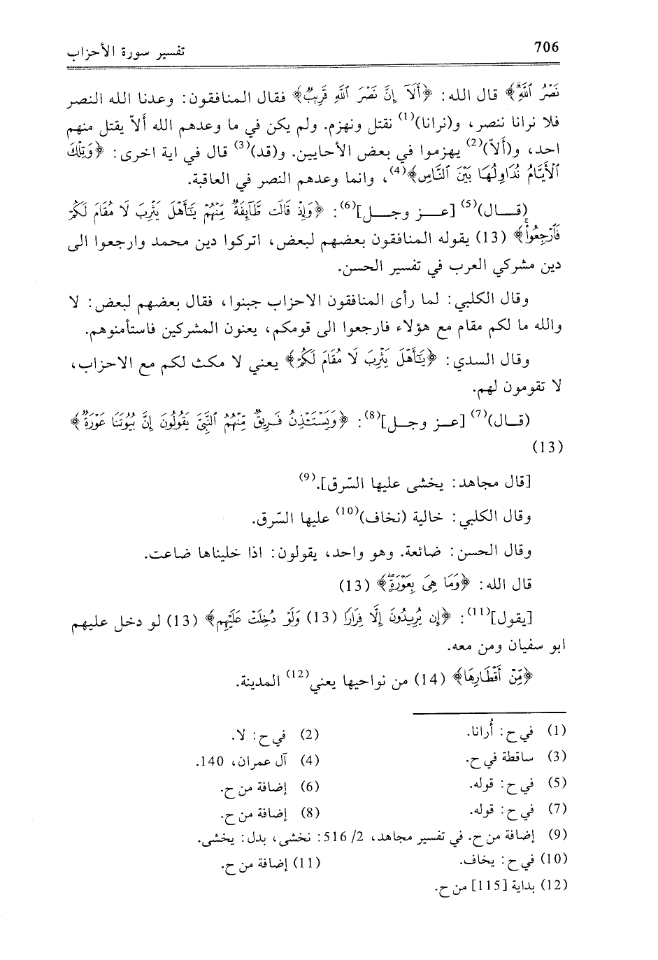 قَالَ عَزَّ وَجَلَّ: {وَإِذْ قَالَتْ طَائِفَةٌ مِنْهُمْ يَا أَهْلَ يَثْرِبَ لا مُقَامَ لَكُمْ فَارْجِعُوا} [الأحزاب: 13] يَقُولُهُ الْمُنَافِقُونَ بَعْضُهُمْ لِبَعْضٍ، اتُرُكُوا دِينَ مُحَمَّدٍ وَارْجِعُوا إِلَى دِينِ مُشْرِكِي الْعَرَبِ فِي تَفْسِيرِ الْحَسَنِ.