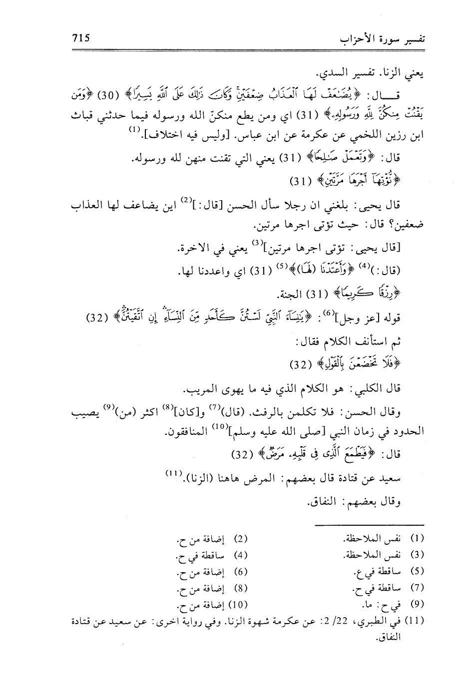 قَالَ: {يُضَاعَفْ لَهَا الْعَذَابُ ضِعْفَيْنِ وَكَانَ ذَلِكَ عَلَى اللَّهِ يَسِيرًا} [الأحزاب: 30] ، {وَمَنْ يَقْنُتْ مِنْكُنَّ لِلَّهِ وَرَسُولِهِ} [الأحزاب: 31] ، أَيْ: وَمَنْ يُطِعْ مِنْكُنَّ اللَّهَ وَرَسُولَهُ فِيمَا حَدَّثَنِي قُبَاثُ ابْنُ رُزَيْنٍ اللَّخْمِيُّ، عَنْ عِكْرِمَةَ، عَنِ ابْنِ عَبَّاسٍ، وَلَيْسَ فِيهِ اخْتِلافٌ.