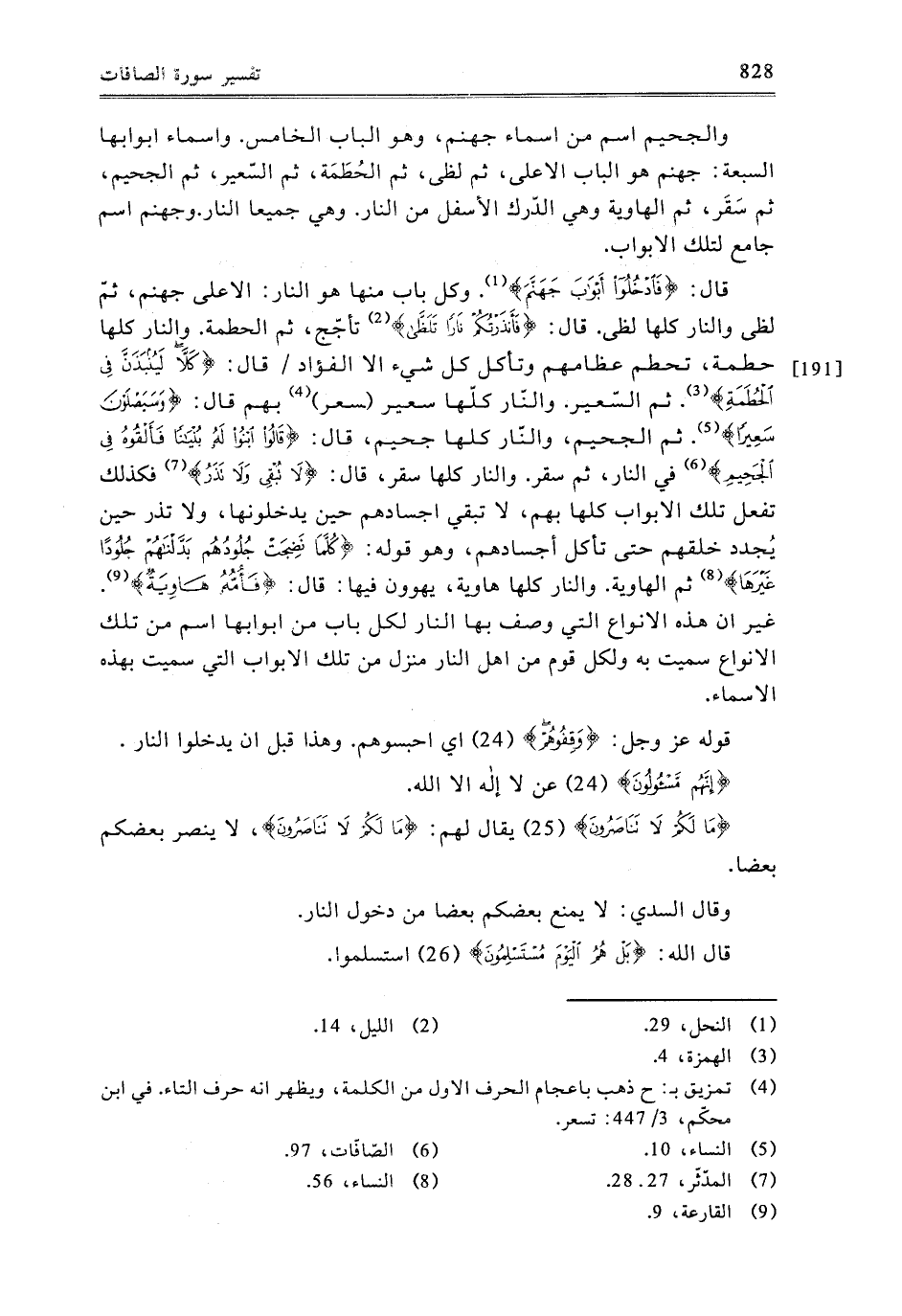 قَوْلُهُ عَزَّ وَجَلَّ: {وَقِفُوهُمْ} [الصافات: 24] ، أَيِ: احْبِسُوهُمْ، وَهَذَا قَبْلَ أَنْ يَدْخُلُوا النَّارَ.