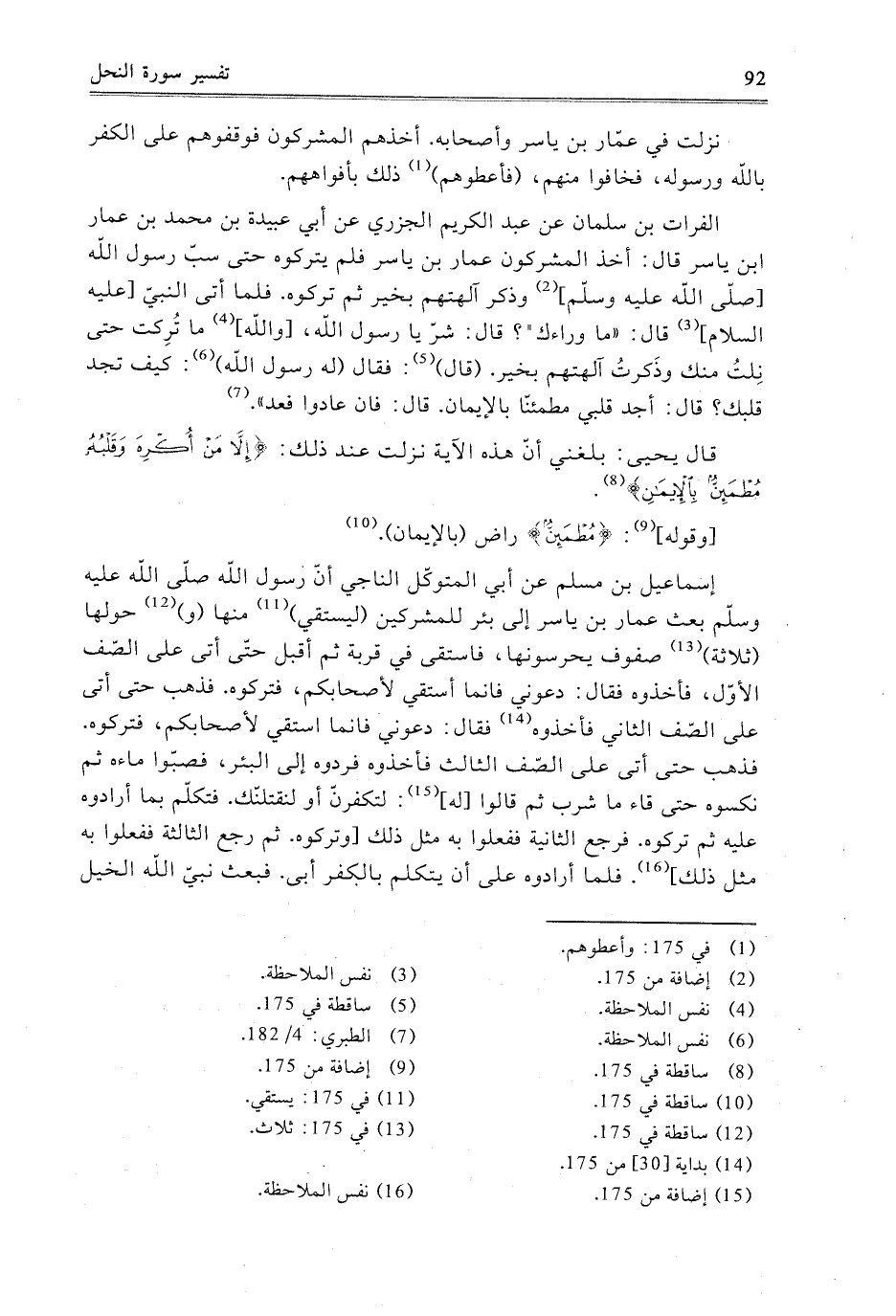 قَالَ يَحْيَى: بَلَغَنِي أَنَّ هَذِهِ الآيَةِ نَزَلَتْ عِنْدَ ذَلِكَ: {إِلا مَنْ أُكْرِهَ وَقَلْبُهُ مُطْمَئِنٌّ بِالإِيمَانِ} [النحل: 106] .