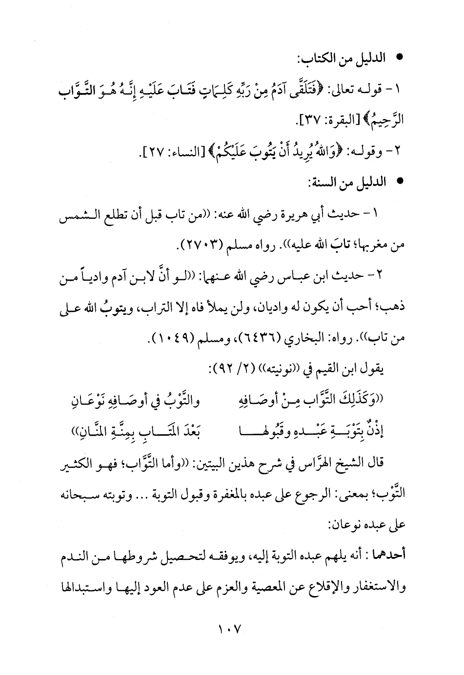 1- قوله تعالى: {فَتَلَقَّى آدَمُ مِنْ رَبِّهِ كَلِمَاتٍ فَتَابَ عَلَيْهِ إِنَّهُ هُوَ التَّوَّاب الرَّحِيمُ} [البقرة: 37] .