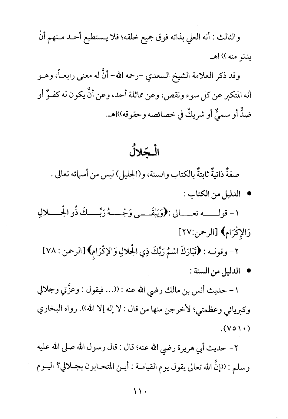 2- وقوله: {تَبَارَكَ اسْمُ رَبِّكَ ذِي الْجَلالِ وَالإكْرَامِ} [الرحمن: 78]