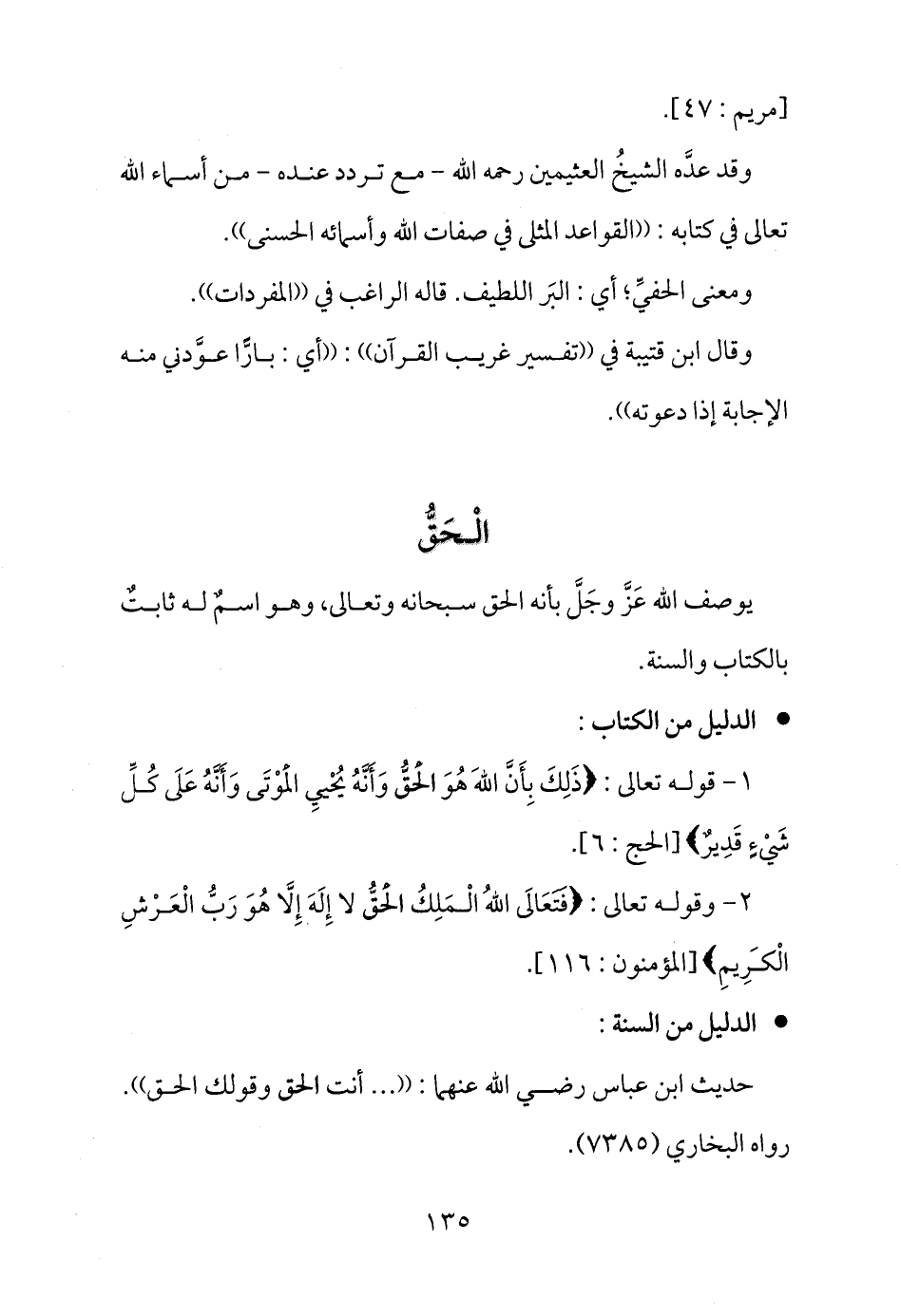 يوصف الله عَزَّ وجَلَّ بأنه الحق سبحانه وتعالى، وهو اسمٌ له ثابتٌ بالكتاب والسنة.
