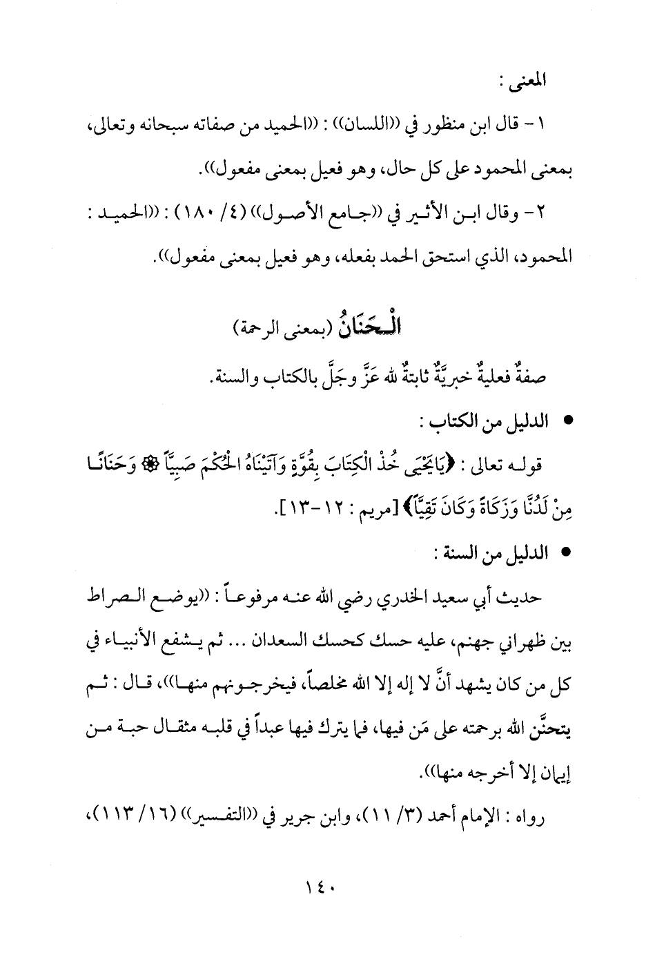 1- قال ابن منظور في ((اللسان)) : ((الحميد من صفاته سبحانه وتعالى، بمعنى المحمود على كل حال، وهو فعيل بمعنى مفعول)) .