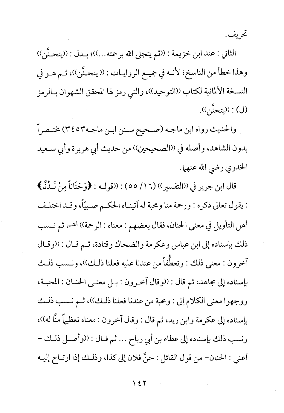 الثاني: عند ابن خزيمة: ((ثم يتجلى الله برحمته ... )) ؛ بدل: ((يتحنَّن)) وهذا خطأ من الناسخ؛ لأنه في جميع الروايات: ((يتحنَّن)) ، ثم هو في النسخة الألمانية لكتاب ((التوحيد)) ، والتي رمز لها المحقق الشهوان بالرمز (ل) : ((يتحنَّن)) .