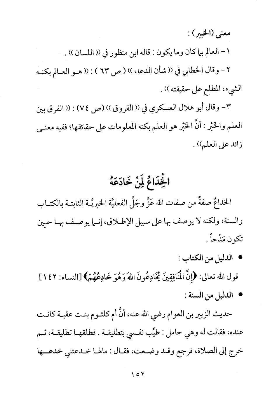 قول الله تعالى: {إِنَّ الْمُنَافِقِينَ يُخَادِعُونَ اللهَ وَهُوَ خَادِعُهُمْ} [النساء: 142] .