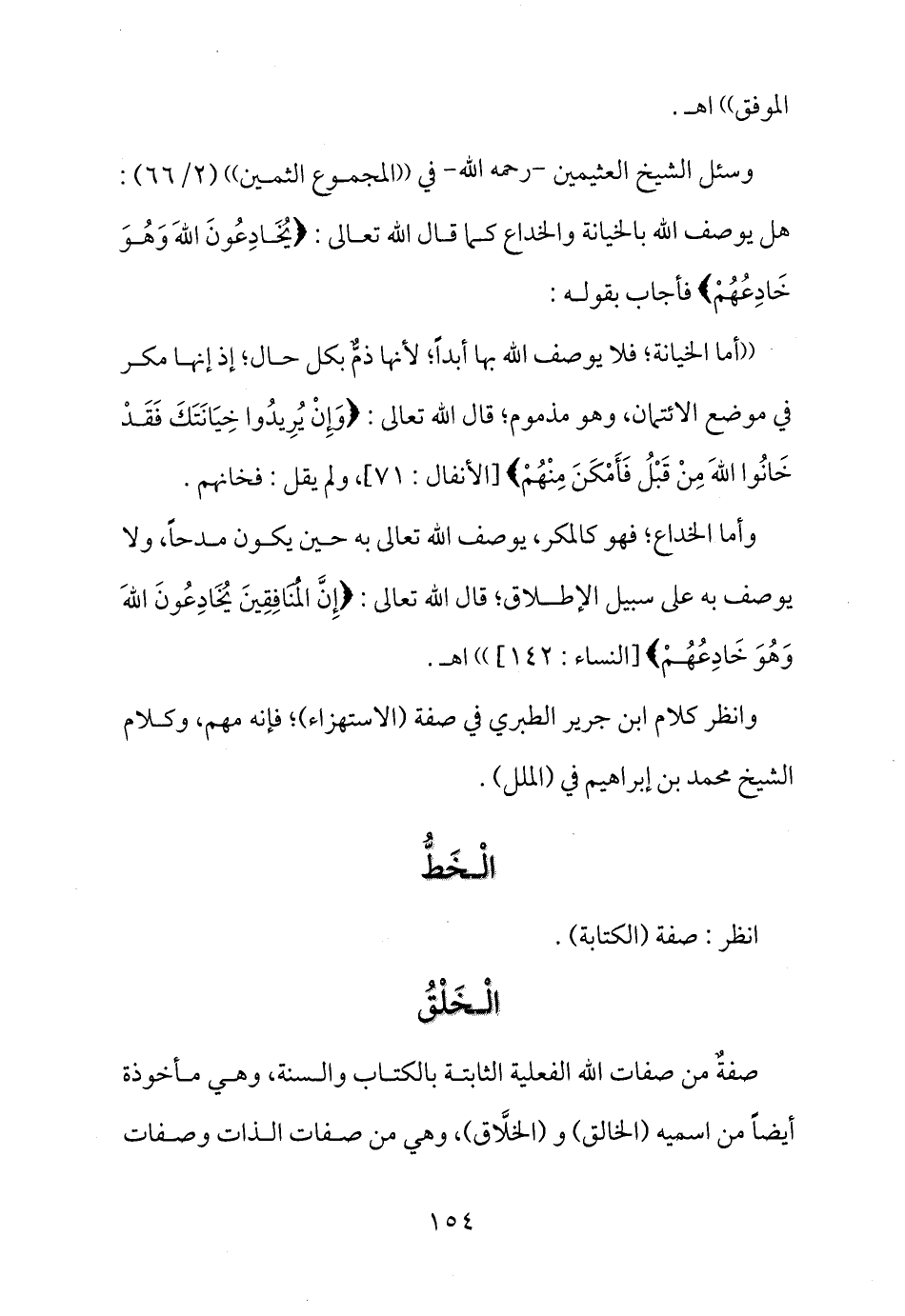 وانظر كلام ابن جرير الطبري في صفة (الاستهزاء) ؛ فإنه مهم، وكلام الشيخ محمد بن إبراهيم في صفة (الملل) .