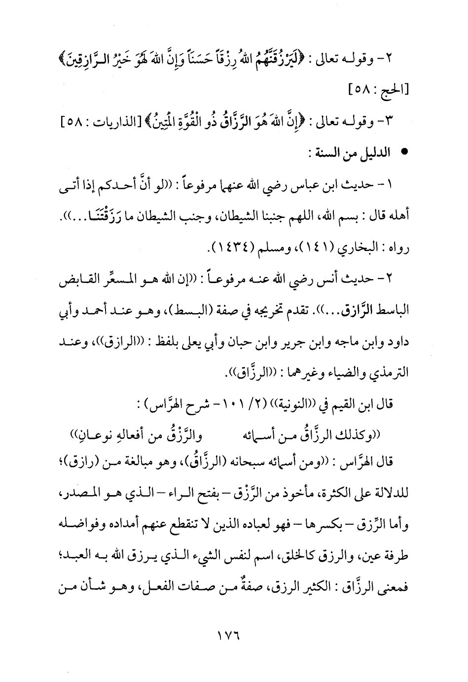 ((وكذلك الرزَّاقُ من أسمائه ... والرَّزْقُ من أفعالهِ نوعانِ))