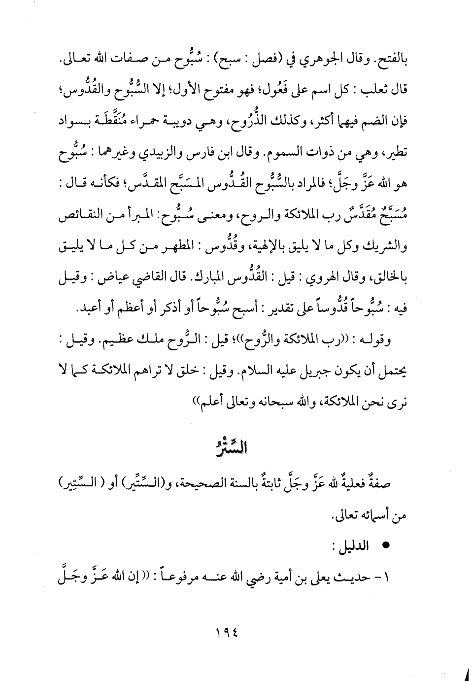 صفةٌ فعليةٌ لله عَزَّ وجَلَّ ثابتةٌ بالسنة الصحيحة، و (السِّتِّير) من أسمائه تعالى.