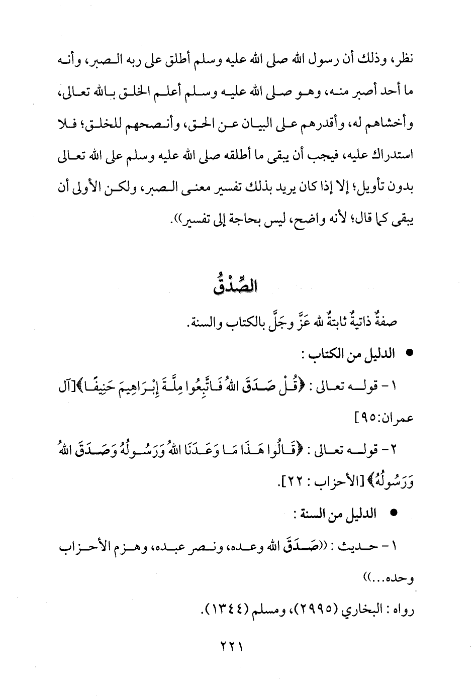 نظر، وذلك أن رسول الله صلى الله عليه وسلم أطلق على ربه الصبر، وأنه ما أحد أصبر منه، وهو صلى الله عليه وسلم أعلم الخلق بالله تعالى، وأخشاهم له، وأقدرهم على البيان عن الحق، وأنصحهم للخلق؛ فلا استدراك عليه، فيجب أن يبقى ما أطلقه صلى الله عليه وسلم على الله تعالى بدون تأويل؛ إلا إذا كان يريد بذلك تفسير معنى الصبر، ولكن الأولى أن يبقى كما قال؛ لأنه واضح، ليس بحاجة إلى تفسير)) .