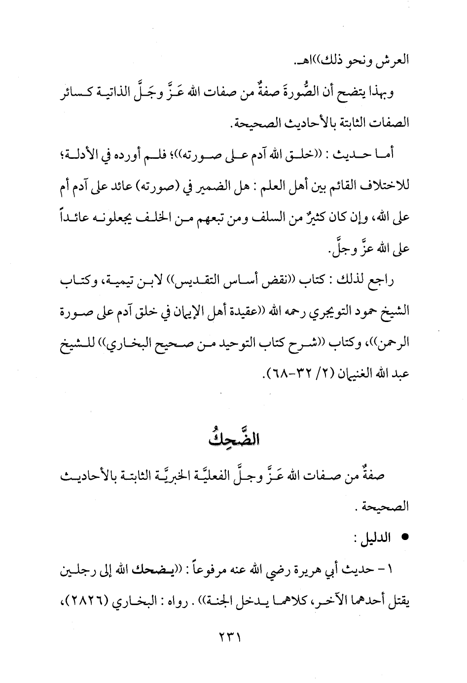 وبهذا يتضح أن الصُّورةَ صفةٌ من صفات الله عَزَّ وجَلَّ الذاتية كسائر الصفات الثابتة بالأحاديث الصحيحة.