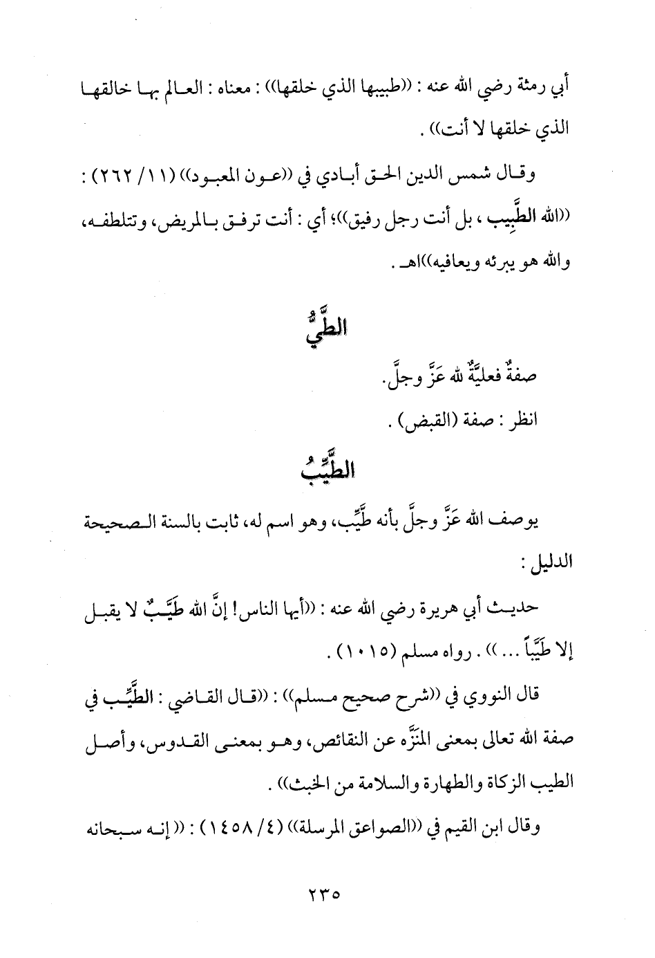 يوصف الله عَزَّ وجلَّ بأنه طَّيِّب، وهو اسم له، ثابت بالسنة الصحيحة.
