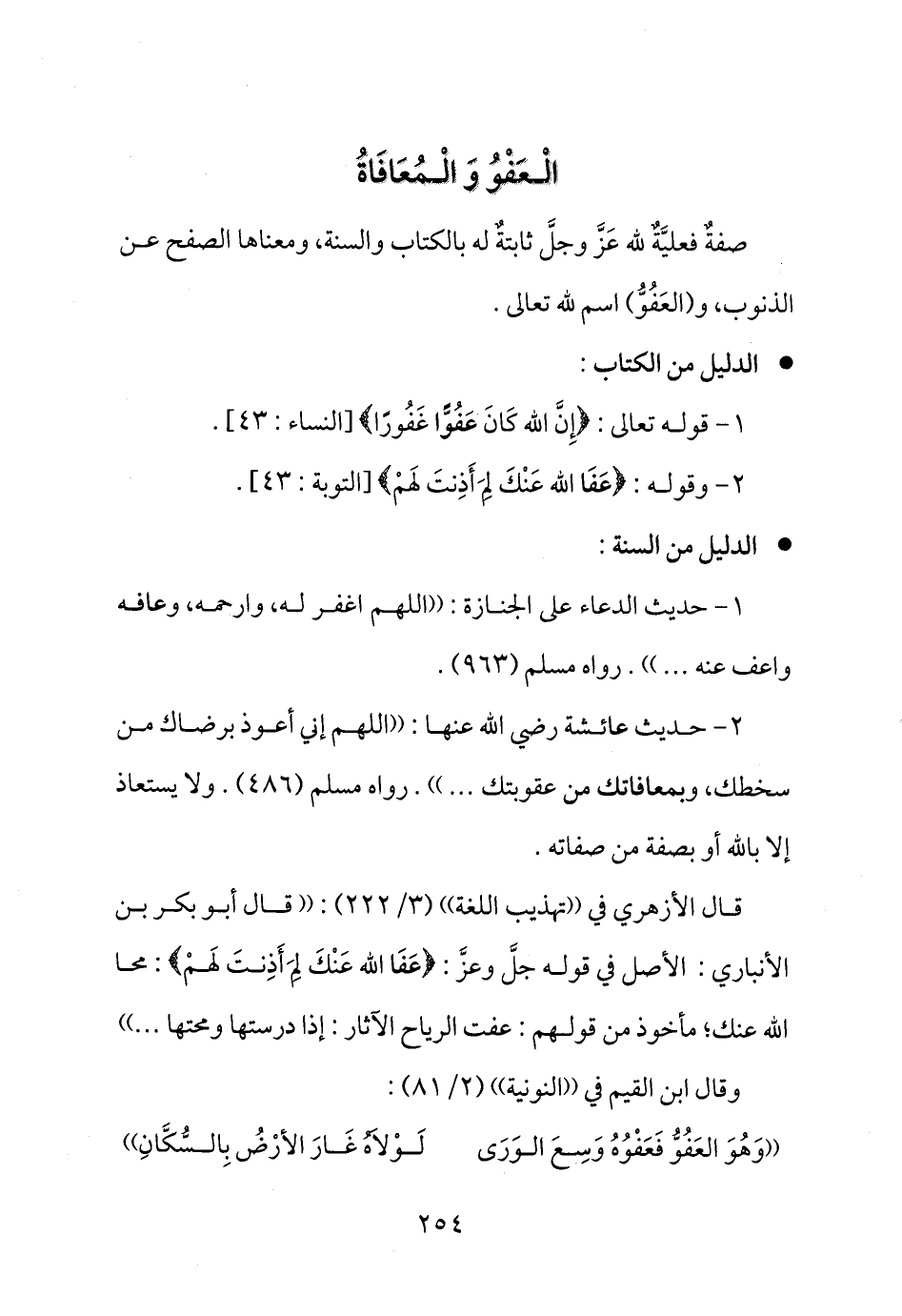 صفةٌ فعليَّةٌ لله عَزَّ وجلَّ ثابتةٌ له بالكتاب والسنة، ومعناها الصفح عن الذنوب، و (العَفُوُّ) اسم لله تعالى.