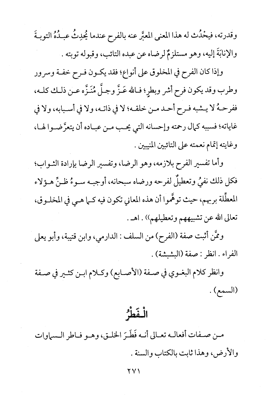وممَّن أثبت صفة (الفرح) من السلف: الدارمي، وابن قتيبة، وأبو يعلى الفراء. انظر: صفة (البشبشة) .