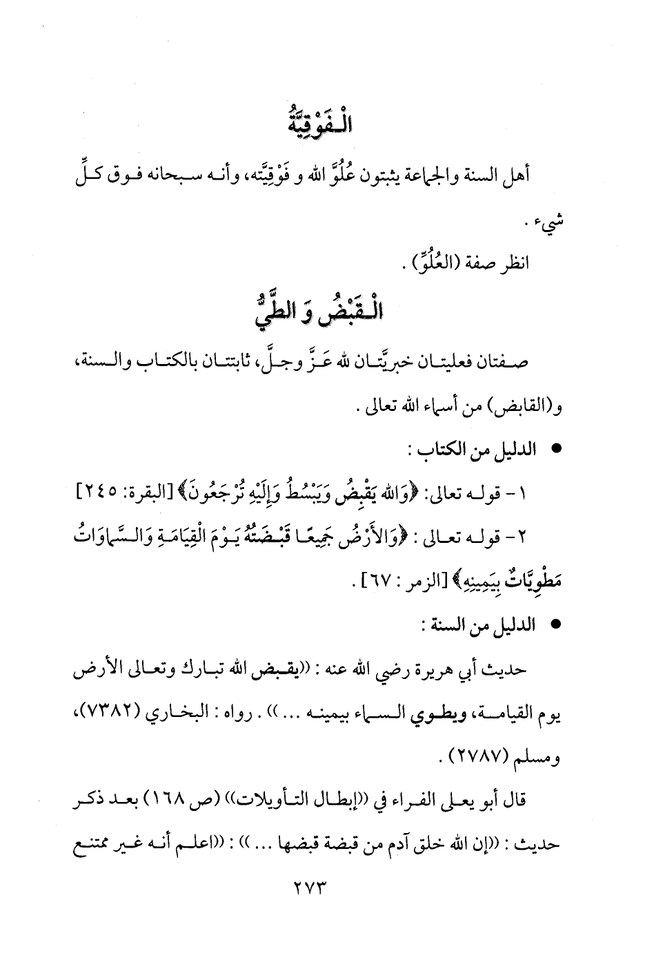 1- قوله تعالى: {وَالله يَقْبِضُ وَيَبْسُطُ وَإِلَيْهِ تُرْجَعُونَ} [البقرة: 245]