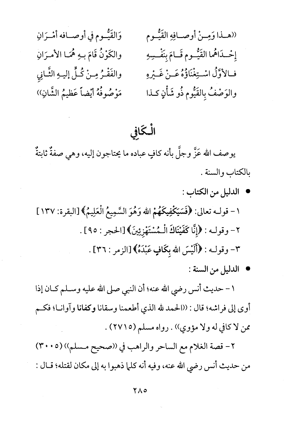 يوصف الله عَزَّ وجلَّ بأنه كافٍ عباده ما يحتاجون إليه، وهي صفةٌ ثابتةٌ بالكتاب والسنة.