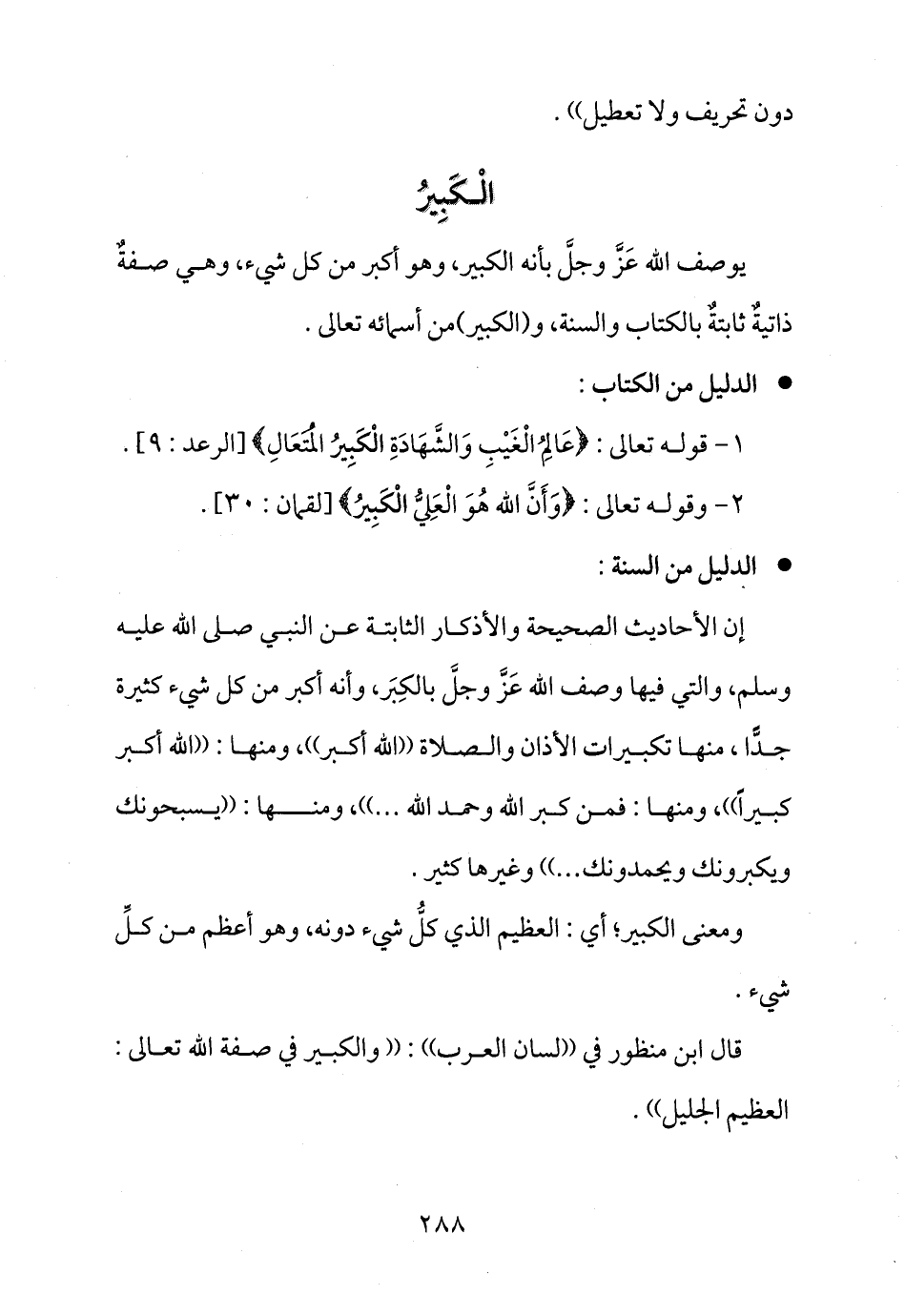 يوصف الله عَزَّ وجلَّ بأنه الكبير، وهو أكبر من كل شيء، وهي صفةٌ ذاتيةٌ ثابتةٌ بالكتاب والسنة، و (الكبير) من أسمائه تعالى.
