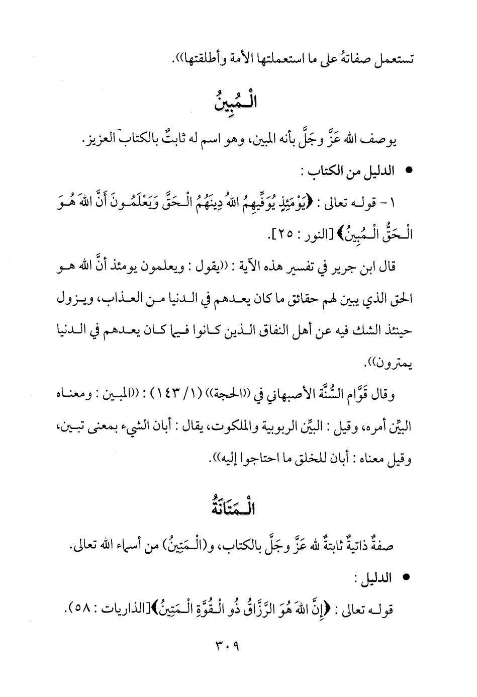 يوصف الله عَزَّ وجَلَّ بأنه المبين، وهو اسم له ثابتٌ بالكتاب العزيز.