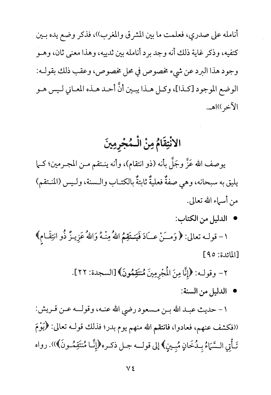 يوصف الله عَزَّ وجَلَّ بأنه (ذو انتقام) ، وأنه ينتقم من المجرمين؛ كما يليق به سبحانه، وهي صفةٌ فعليةٌ ثابتةٌ بالكتاب والسنة، وليس (المنتقم) من أسماء الله تعالى.