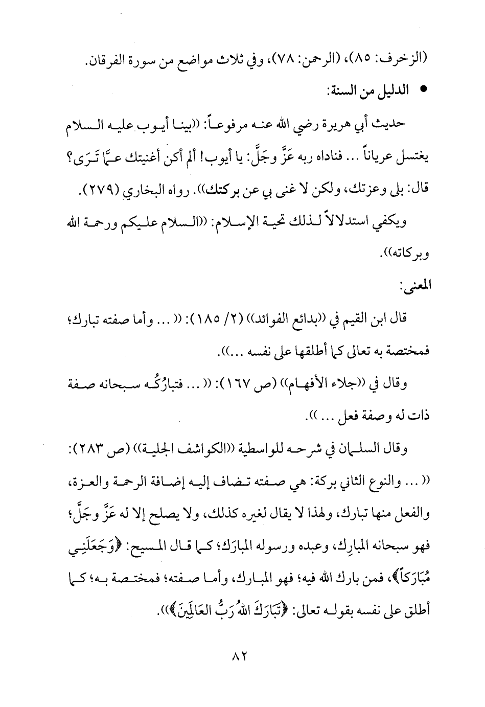 وقال في ((جلاء الأفهام)) (ص 167) : (( ... فتبارُكُه سبحانه صفة ذات له وصفة فعل ... )) .