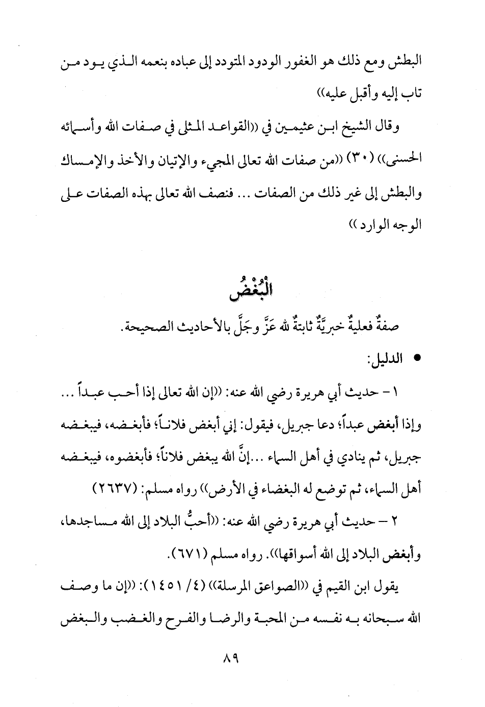 يقول ابن القيم في ((الصواعق المرسلة)) (4/1451) : ((إن ما وصف الله سبحانه به نفسه من المحبة والرضى والفرح والغضب والبغض