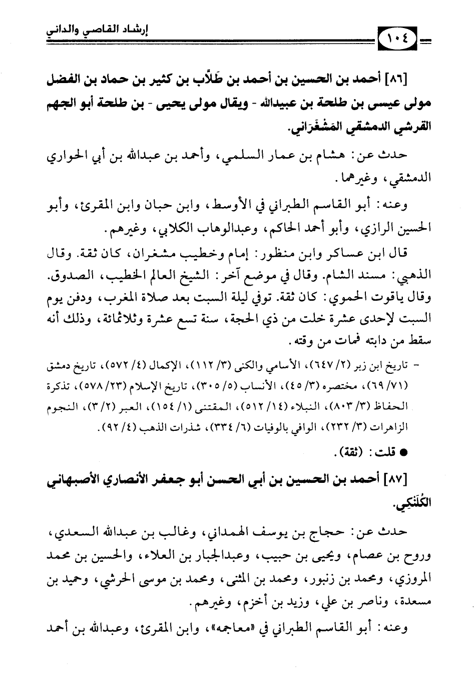 [87] أحمد بن الحسين بن أبي الحسن أبو جعفر الأنصاري الأصبهاني الكلنكي.