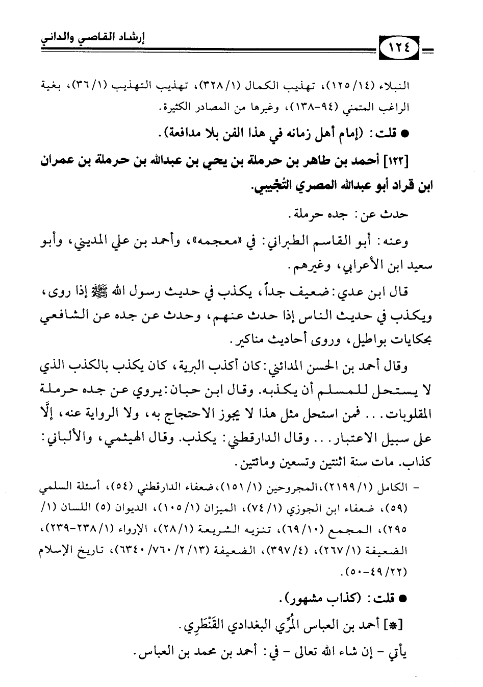 • قلت: (إمام أهل زمانه في هذا الفن بلا مدافعة).