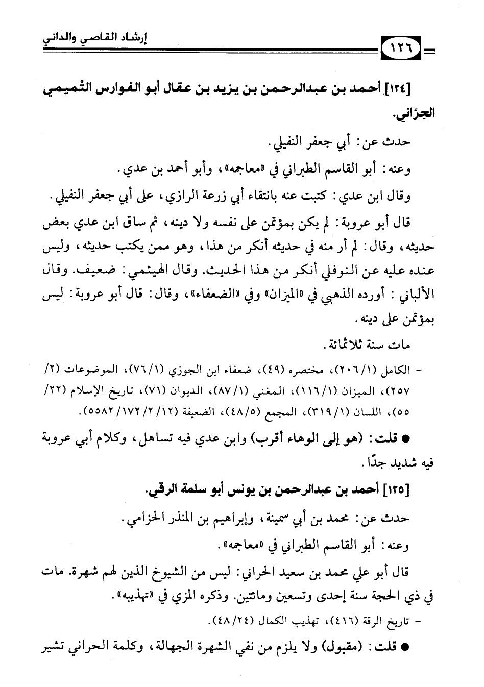 [124] أحمد بن عبد الرحمن بن يزيد بن عقال أبو الفوارس التميمي الحراني.