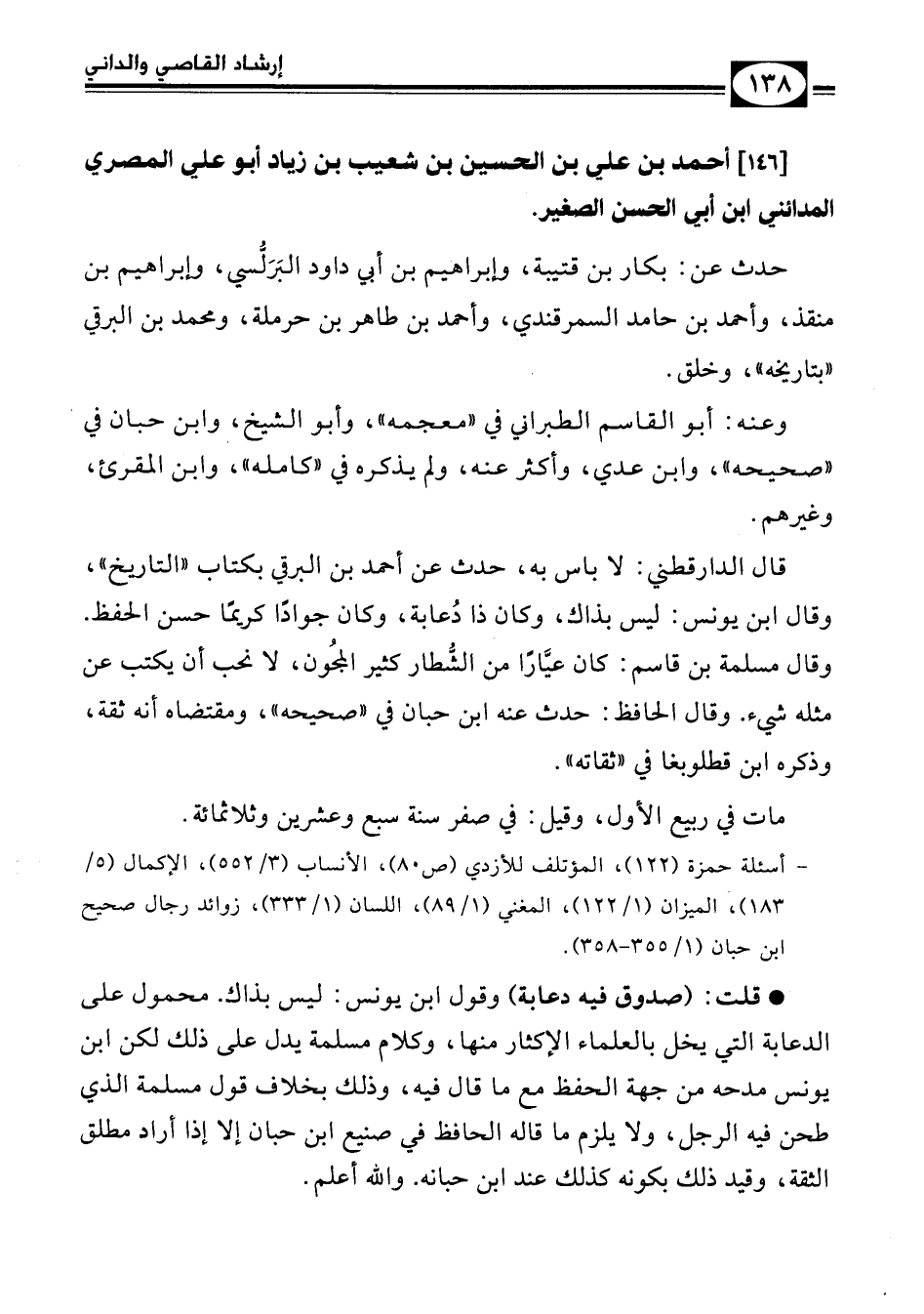 [146] أحمد بن علي بن الحسين بن شعيب بن زياد أبو علي المصري المدائني ابن أبي الحسن الصغير.