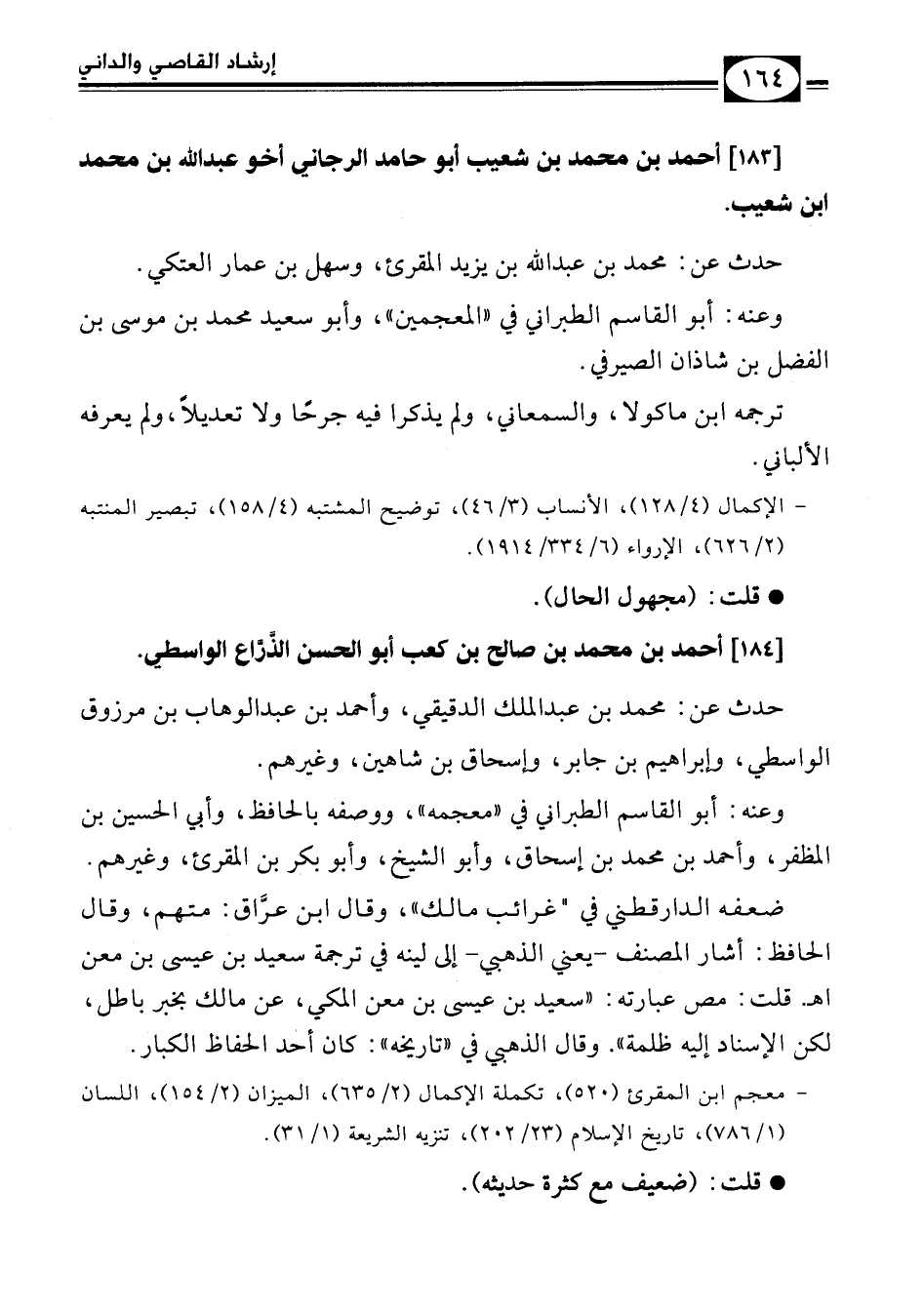 - معجم ابن المقرئ (520)، تكملة الإكمال (2/ 635)، الميزان (2/ 154)، اللسان (1/ 786)، تاريخ الإسلام (23/ 202)، تنزيه الشريعة (1/ 31).
