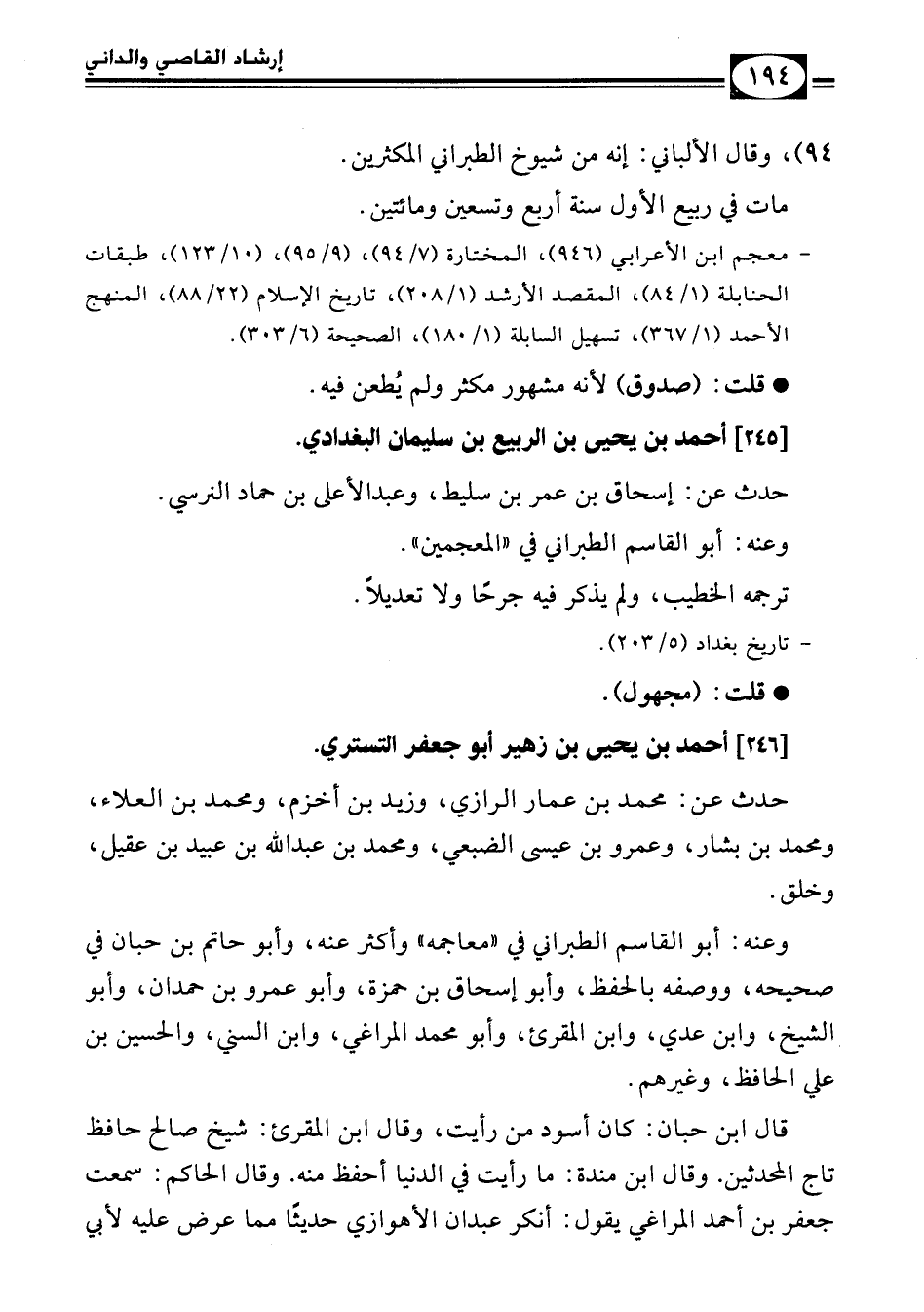 94 -)، وقال الألباني: إنه من شيوخ الطبراني المكثرين.