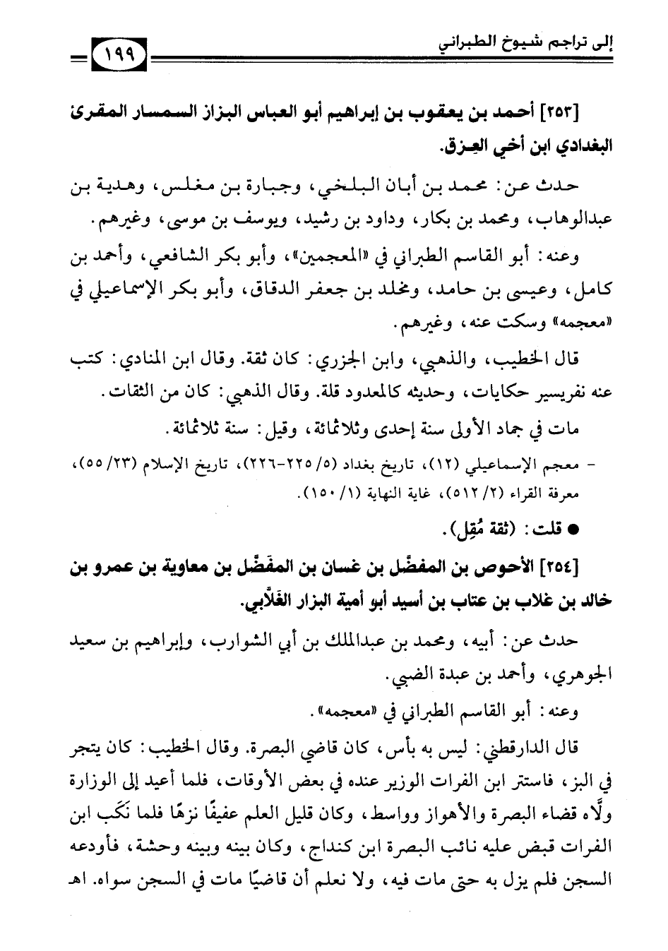 [253] أحمد بن يعقوب بن إبراهيم أبو العباس البزاز السمسار المقرئ البغدادي ابن أخي العزق.
