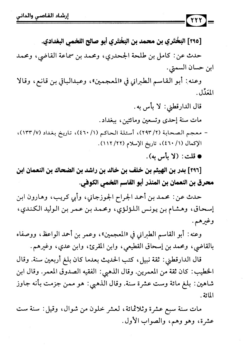 [296] بدر بن الهيثم بن خلف بن خالد بن راشد بن الضحاك بن النعمان بن محرق بن النعمان بن المنذر أبو القاسم اللخمي الكوفي.