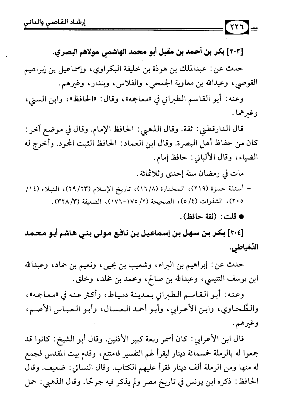 [304] بكر بن سهل بن إسماعيل بن نافع مولى بني هاشم أبو محمد الدمياطي.