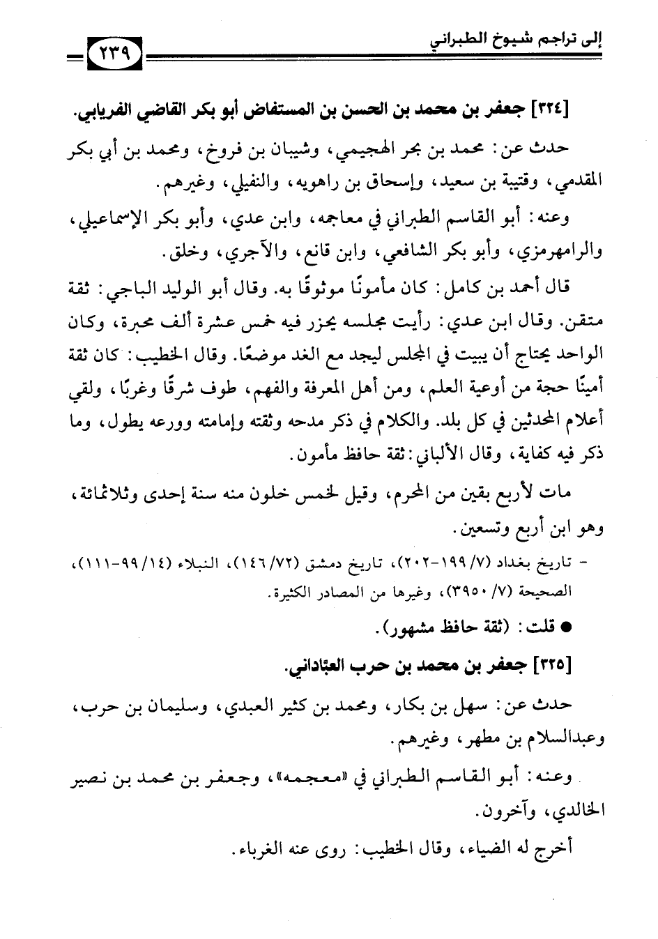 [324] جعفر بن محمد بن الحسن بن المستفاض أبو بكر القاضي الفريابي.