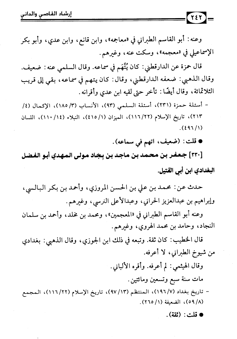 [330] جعفر بن محمد بن ماجد بن بجاد مولى المهدي أبو الفضل البغدادي ابن أبي القتيل.