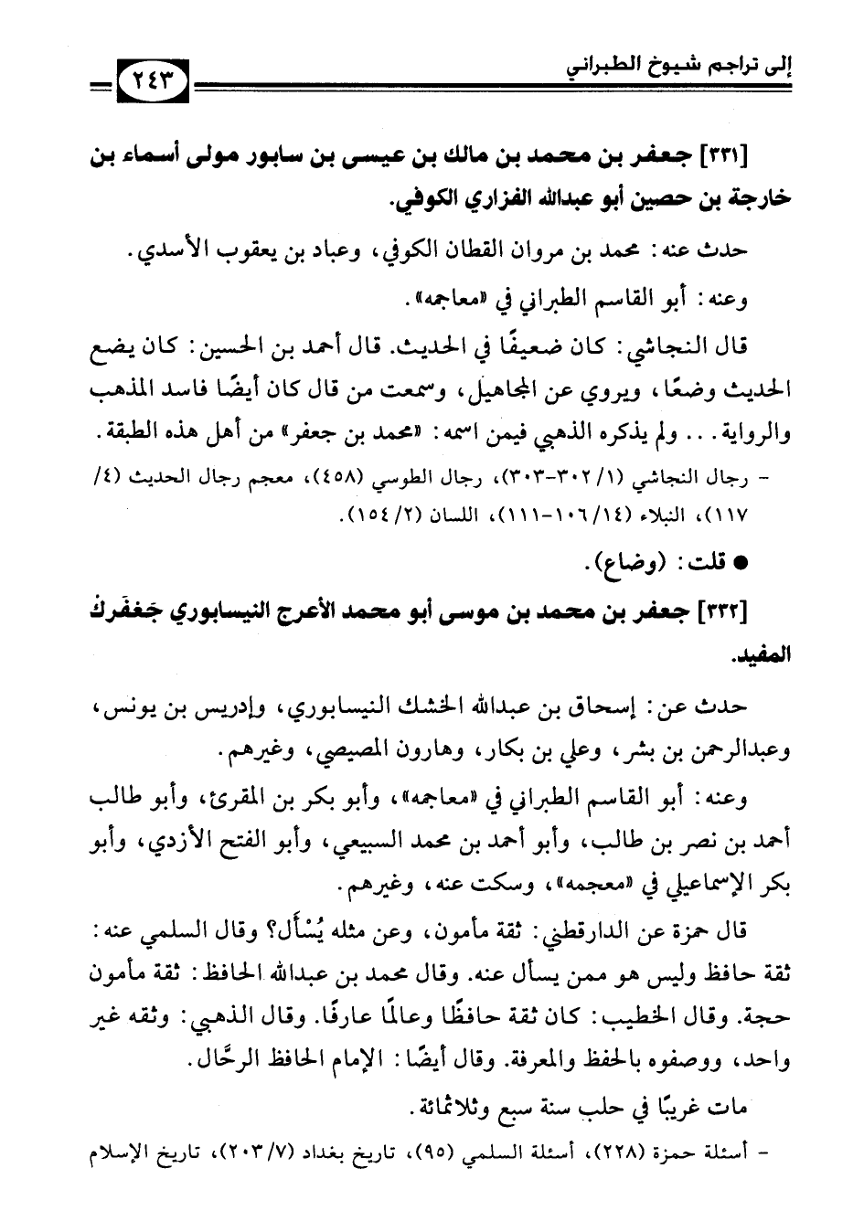[332] جعفر بن محمد بن موسى أبو محمد الأعرج النيسابوري جعفرك المفيد.