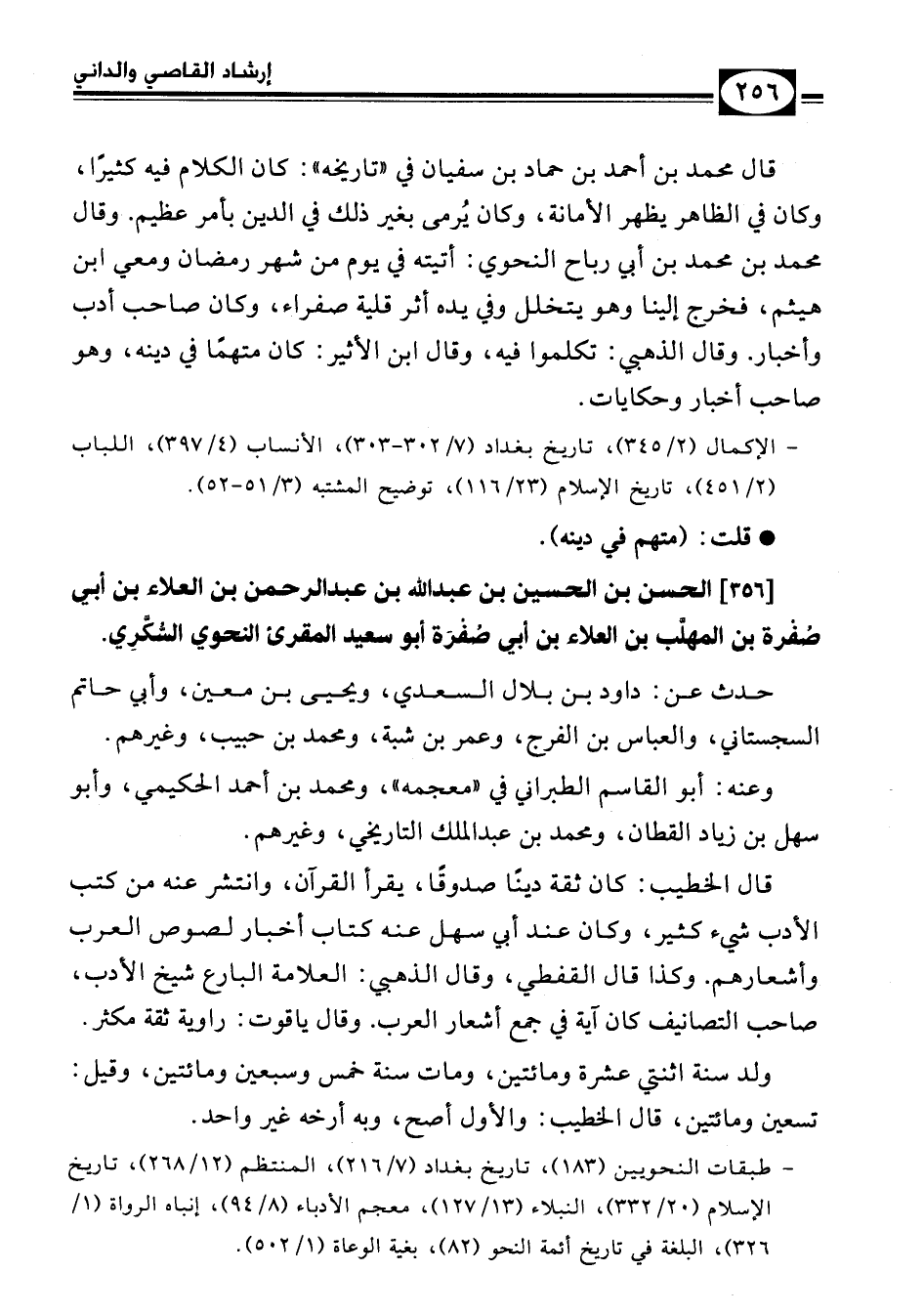 [356] الحسن بن الحسين بن عبد الله بن عبد الرحمن بن العلاء بن أبي صفرة بن المهلب بن العلاء بن أبي صفرة أبو سعيد المقرئ النحوي السكري.