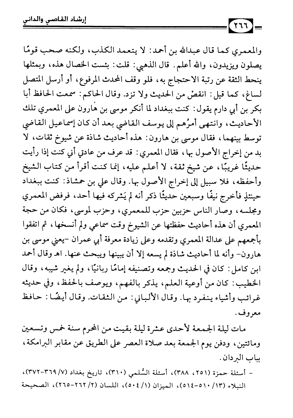 أسئلة حمزة (251، 388)، أسئلة السُّلمي (310)، تاريخ بغداد (7/ 369 - 372)، النبلاء (13/ 510 - 514)، الميزان (1/ 504)، اللسان (2/ 262 - 265)، الصحيحة