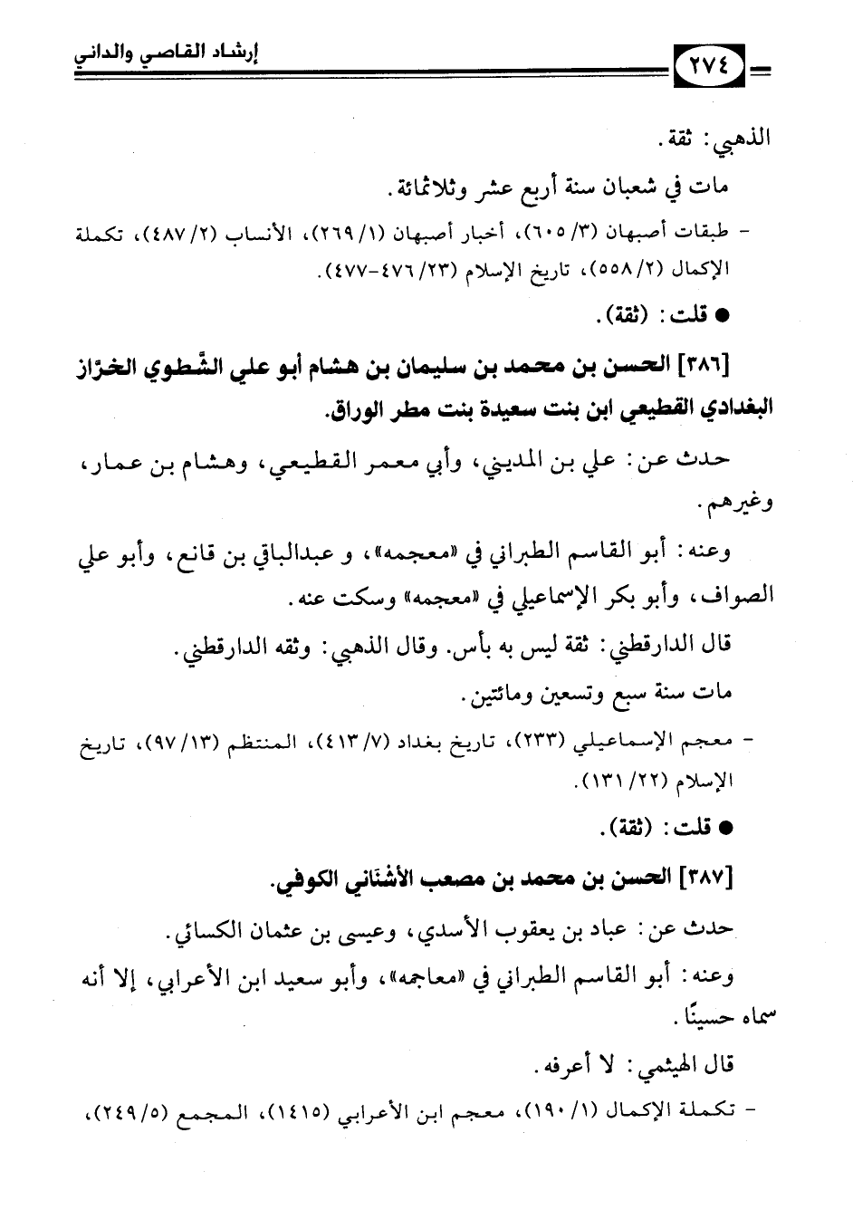 - معجم الإسماعيلي (233)، تاريخ بغداد (7/ 413)، المنتظم (13/ 97)، تاريخ الإسلام (22/ 131).